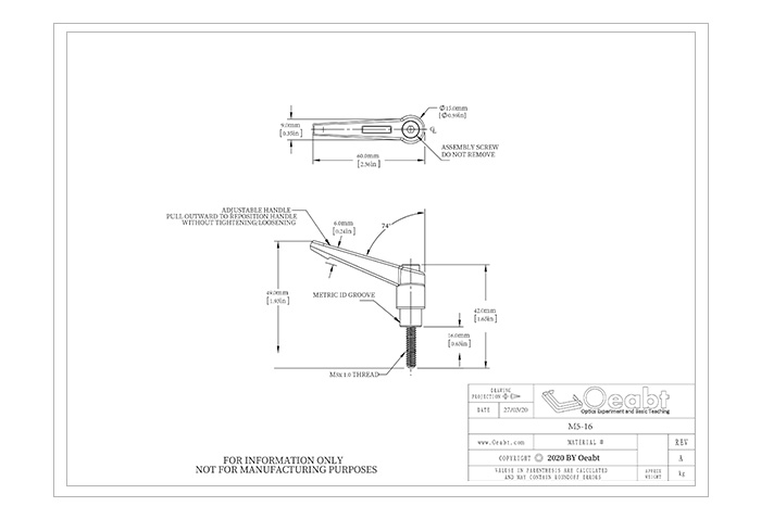 快速拆卸手柄用于將夾塊固定在接桿上。手柄長度2.36英寸(60mm) ,包含一個(gè)1/4"-20 (M6)螺栓,內(nèi)部的棘輪傳動(dòng)機(jī)構(gòu)使手柄在回調(diào)位置的過程中不驅(qū)動(dòng)螺栓。可直接旋轉(zhuǎn)手柄安裝,能在擰緊和松開夾塊時(shí)更好地控制所需的扭力。縮短了基本設(shè)置和對(duì)準(zhǔn)所需的時(shí)間,以便快速固定夾塊。