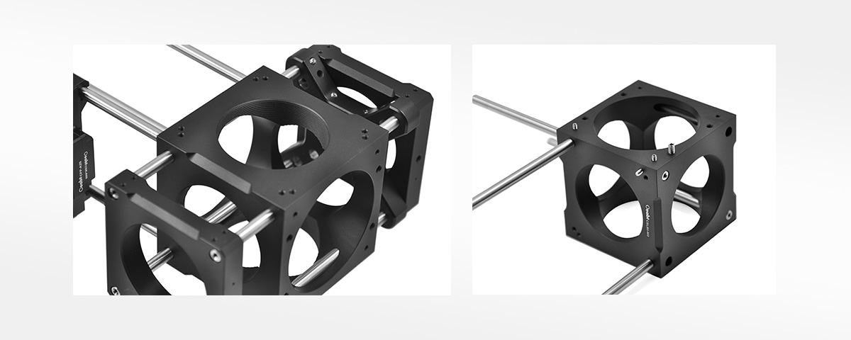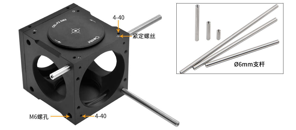 ? 四個面上開有4-40美制螺孔,能夠安裝不同方向的?6mm籠桿;
