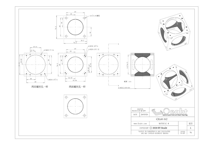 是一個SM2螺紋籠式立方體蓋板,搭配CSL60-M2籠式立方體使用,通過4個M4帽頭螺絲在立方體外面連接蓋板上的沉頭孔安裝固定;可通過CSL-P2籠式防塵蓋,在立方體內提供避光的環(huán)境。