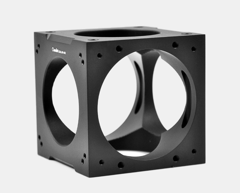 (2)立方體兩個面加工有用于籠式支桿的?6mm通孔,而另四個面具有用于將籠式支桿擰在立方體上的4-40螺孔。通孔允許立方體沿著籠式支桿移動,然后使用立方體上的M3緊定螺絲鎖緊;