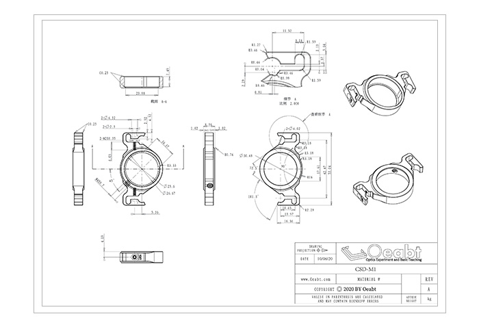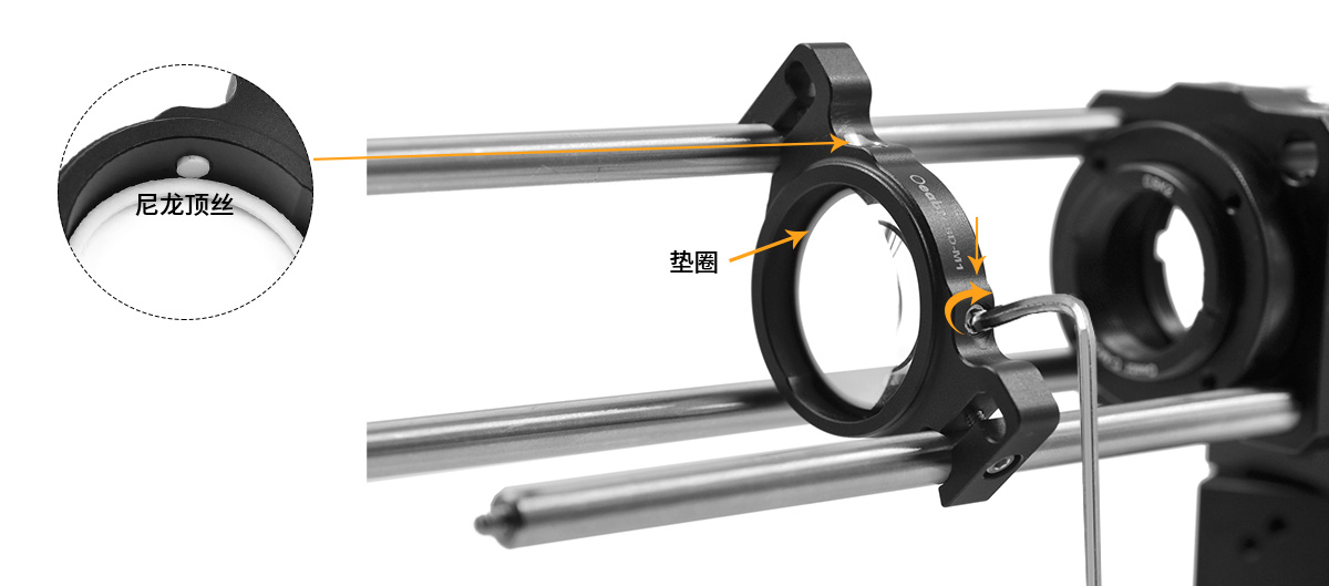 ? 頂面兩個尼龍頂絲可起到三點固定光學(xué)元件;