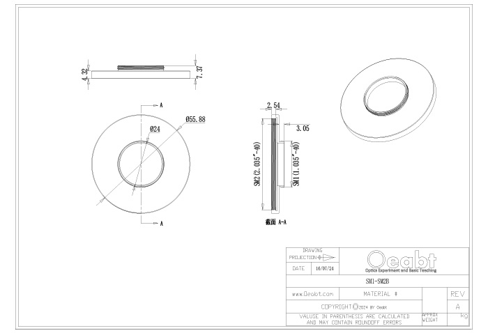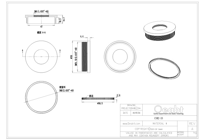 透鏡套管轉接件的外螺紋設計用于SM1或SM2內(nèi)螺紋組件之間的連接。