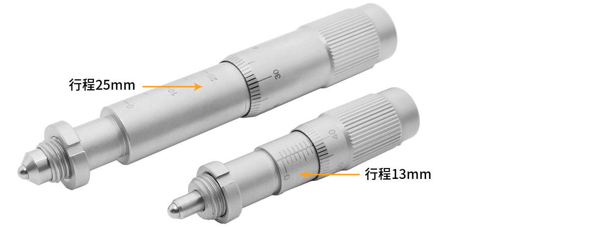 (2)SM25測(cè)微頭行程范圍為25mm,SM13測(cè)微頭行程范圍為13mm。游標(biāo)刻度1mm;螺距0.5mm,并以10μm的增量直接讀取,游標(biāo)讀數(shù)為1μm;激光刻印刻度清晰,耐摩擦不易掉字,誤差小,測(cè)量更準(zhǔn)確。