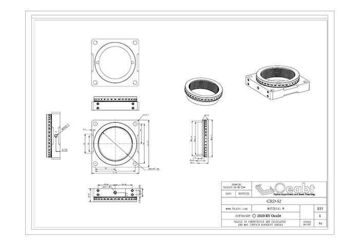 CRD-S2旋轉(zhuǎn)安裝座設計用于將最厚13mm的?2英寸(50.8mm)光學元件安裝到SM2螺紋(2.035"-40)旋轉(zhuǎn)架上。可進行360°手動旋轉(zhuǎn),平滑旋轉(zhuǎn)機制允許精確定位該旋轉(zhuǎn)架。安裝座與60mm籠式系統(tǒng)兼容,并且可以使用旋轉(zhuǎn)安裝座底部的M4螺紋安裝孔,搭載安裝座在自由空間使用。