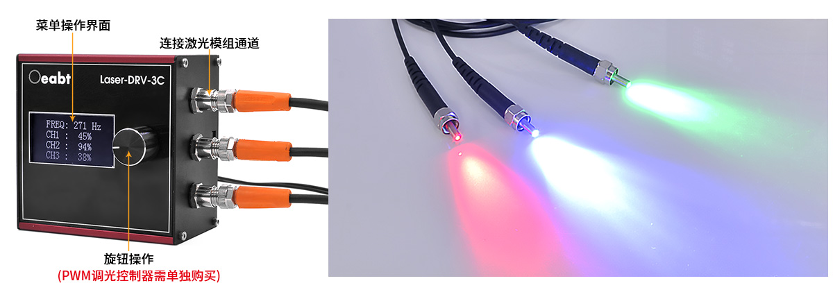 ? 搭配PWM調光控制器,支持三個通道激光光源的PWM模式光強調整;