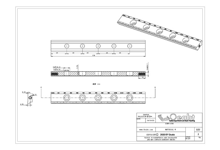 OOM-L150 |?規(guī)格: 150*18.1*7.0mm;?沉頭孔:?6.5mm*5處; 重量:36.5g; |