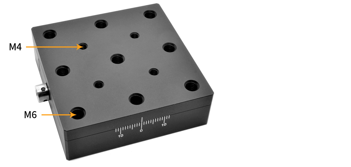 (2)模塊化設(shè)計允許多個位移臺以二軸或三軸的配置組裝。位移臺具有4個沉頭孔,可以使多個位移臺進(jìn)行堆疊組裝,正交度非常出色,偏差小。沉頭孔使得該位移臺可直接安裝到面包板上。