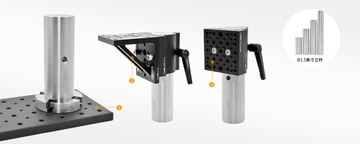 ? 夾塊裝置可在?1.5英寸接桿上滑動(dòng),實(shí)現(xiàn)垂直定位;