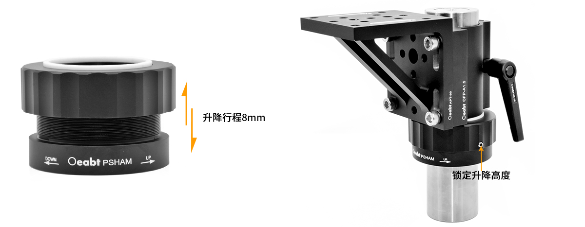 (3)PSHAM可調(diào)套環(huán)為安裝在接桿上的組件提供縱向8.0mm的升降高度調(diào)節(jié)行程,易于操作的驅(qū)動(dòng)環(huán)可實(shí)現(xiàn)每轉(zhuǎn)0.6mm的精細(xì)高度調(diào)節(jié)。