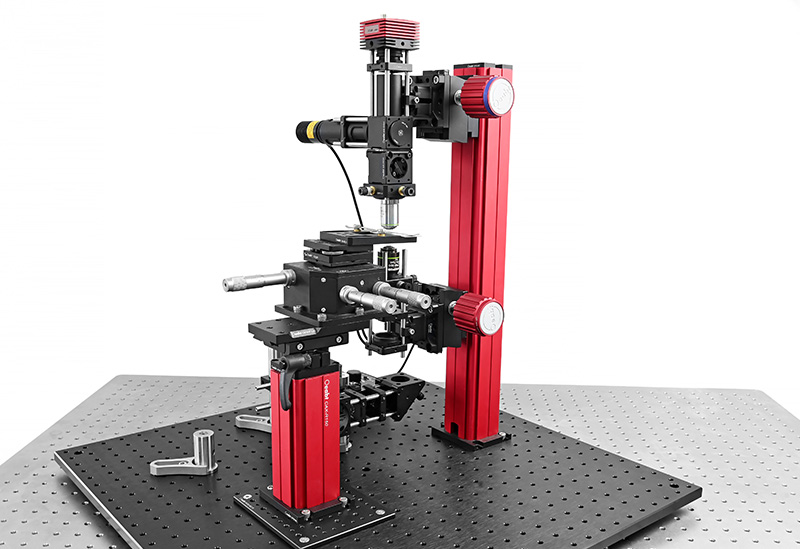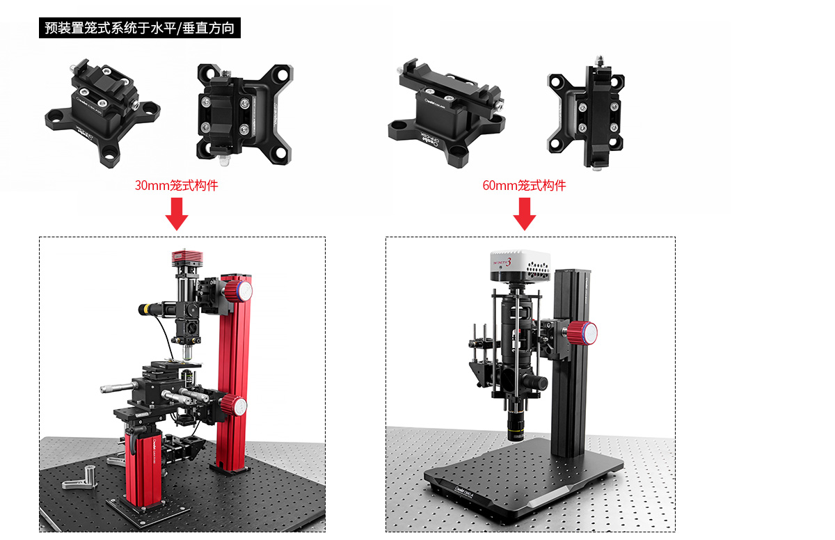 顯微鏡調(diào)焦滑臺利用鋼珠導(dǎo)軌式齒條調(diào)焦機構(gòu),可進行粗動調(diào)焦行程移動約38mm,實現(xiàn)顯微鏡頭升降調(diào)節(jié)。通過齒桿套的偏心調(diào)整,促進齒輪與齒條的嚙合程度,以使運動平穩(wěn)并消除空程。支持垂直方向的最大負載為1kg。(請勿水平方向平躺式使用,會有回調(diào)間隙的問題影響,如需搭載更大負載,聯(lián)系客服咨詢技術(shù)支持。)