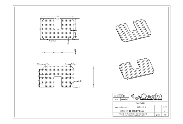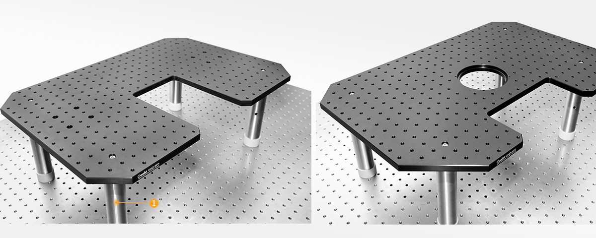 ? 周邊有4處沉頭孔將面包板連接固定至光學(xué)平臺(tái)、安裝接桿、支架或其它表面板上;