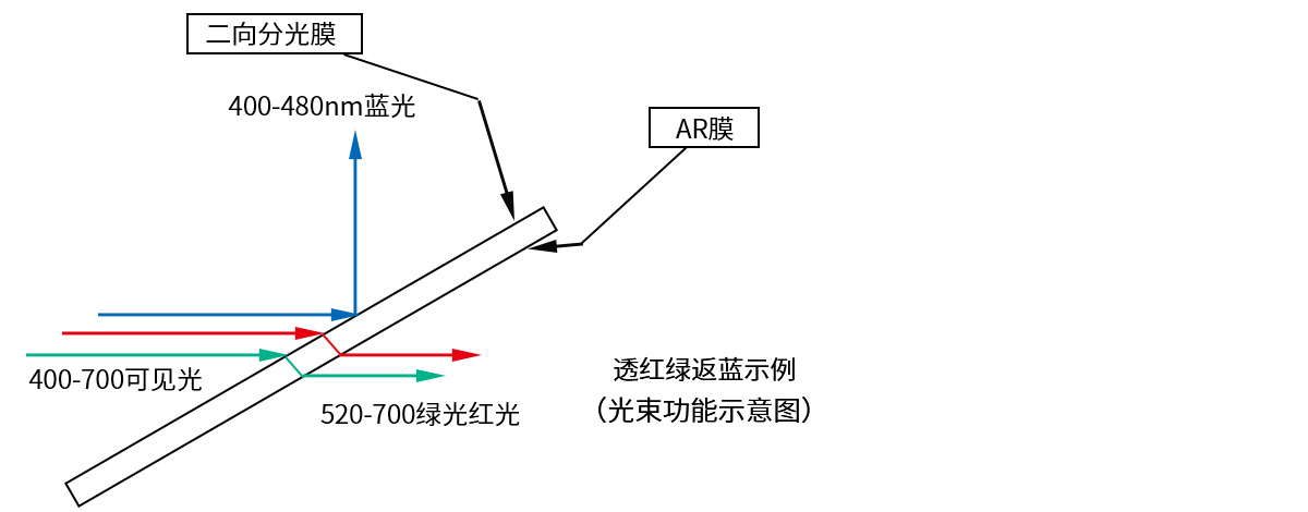 ? 可選490長(zhǎng)波通(透紅綠反藍(lán)),或600短波通(透藍(lán)綠反紅);