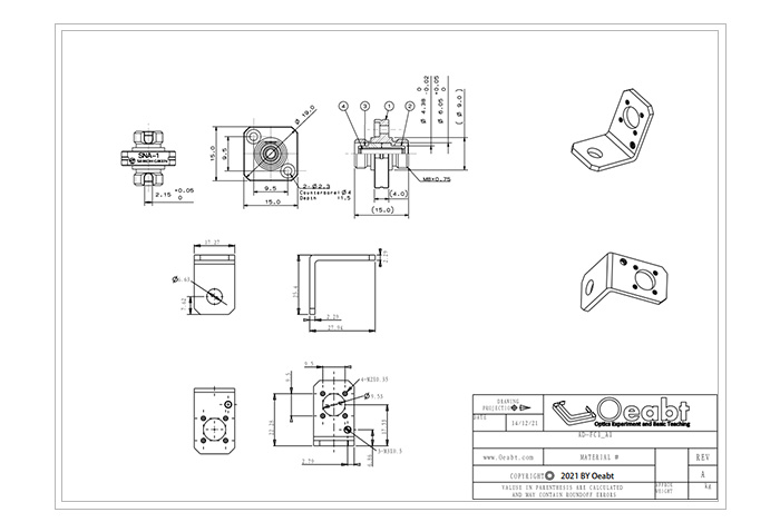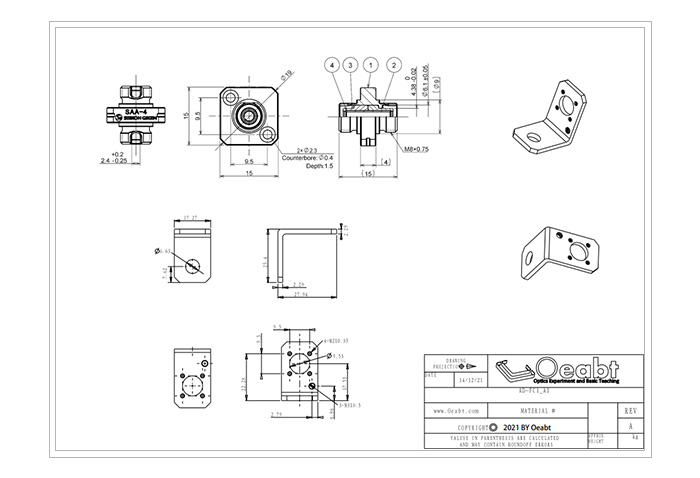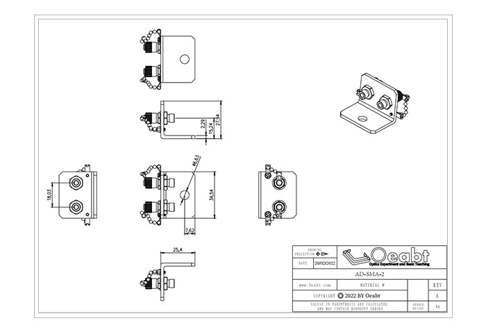 (5)提供單孔、雙孔、四孔規(guī)格的的集成式支架,L形的固定支架包含1個(gè)或2個(gè)的通孔,利用附帶的M6柱螺絲便于安裝到接桿光學(xué)平臺(tái)或面包板上。