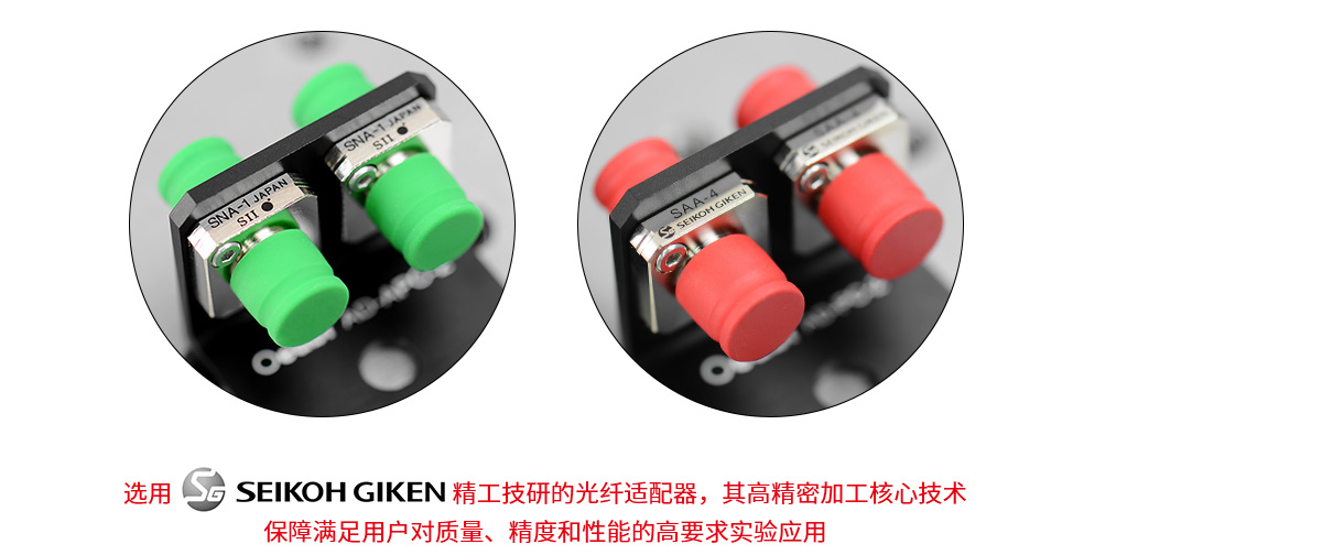 (4)SMA光纖套管架采用空氣隙結(jié)構(gòu),支架的每個(gè)SMA-SMA接頭包含一個(gè)金屬套管,用于連接SMA905型接頭。對接兩根光纖的同心度可達(dá)到0.005mm以內(nèi)。附帶的有金屬帽用于末端,可以在不使用時(shí)起到防塵、保護(hù)作用。