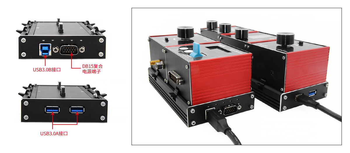 1處USB3.0-B接口,1處DB15復合電源端子, 2處USB3.0-A接口 |