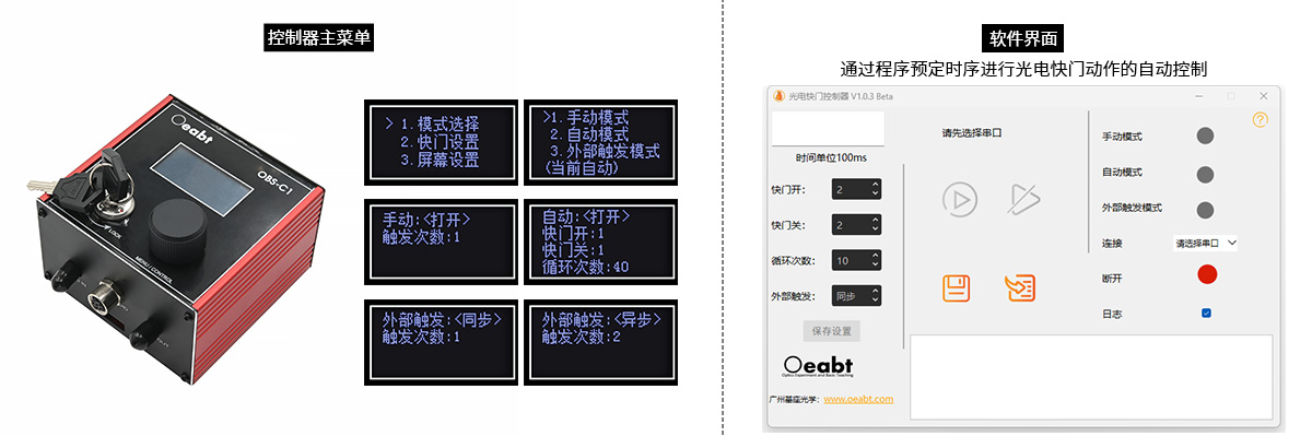 OBS-C1光電快門控制器用于驅動和控制單路通道的光電快門或其他電磁線圈類設備。可連接Oeabt OBS-P1光電快門和兼容此接口的其他由電流和脈沖驅動的執(zhí)行器。
