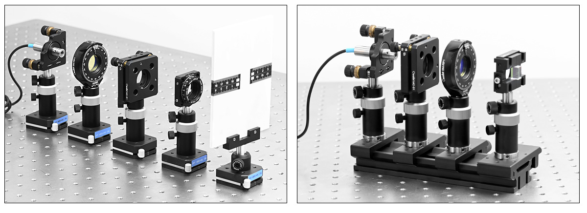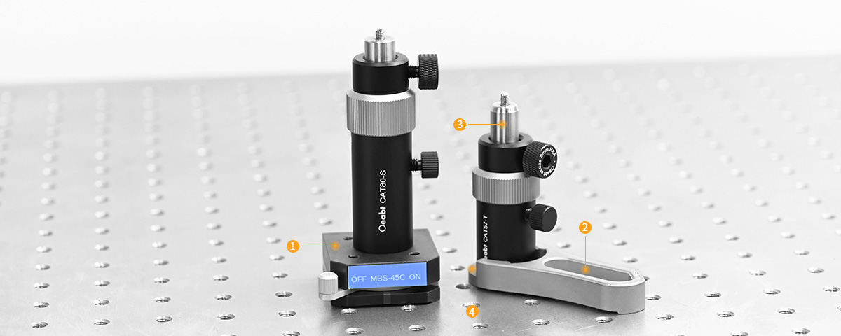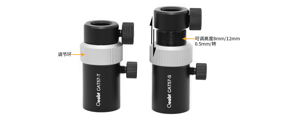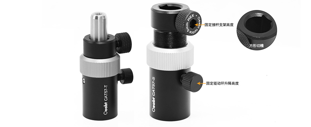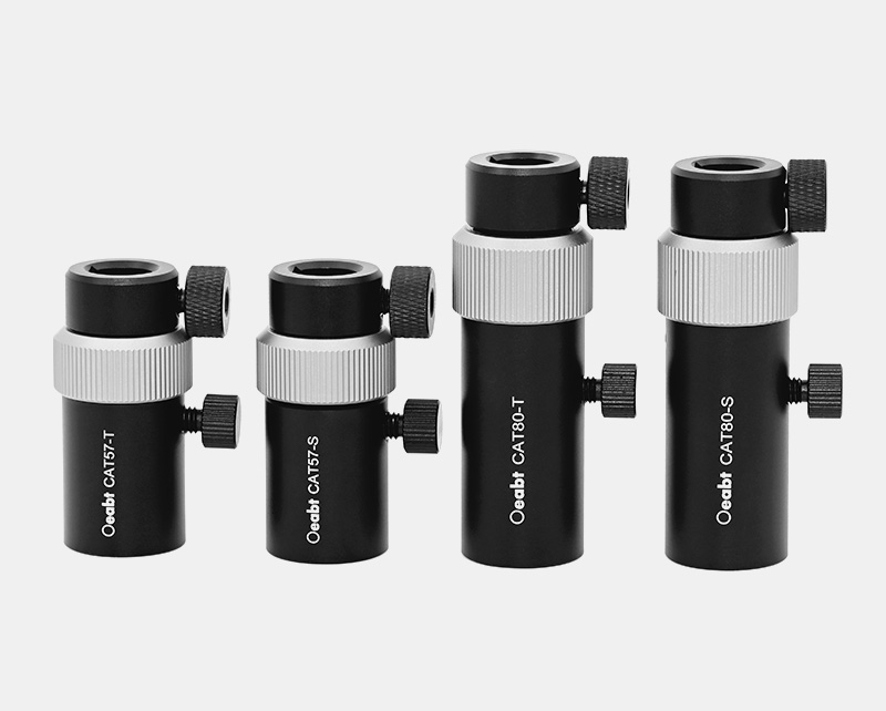 應(yīng)用在一條光軸上的多組件連接時(shí),CAT-T系列因其中心螺紋連接組件,會(huì)使接桿支架本體側(cè)面的緊定螺釘?shù)慕佑|方向無法統(tǒng)一,導(dǎo)致光軸路徑的偏差。而CAT-S系列可規(guī)避此類情況的發(fā)生,沉頭孔的設(shè)計(jì)使得用戶在確定接桿固定方向時(shí),由上端向下連接擰緊柱頭螺絲即可。