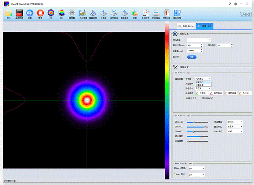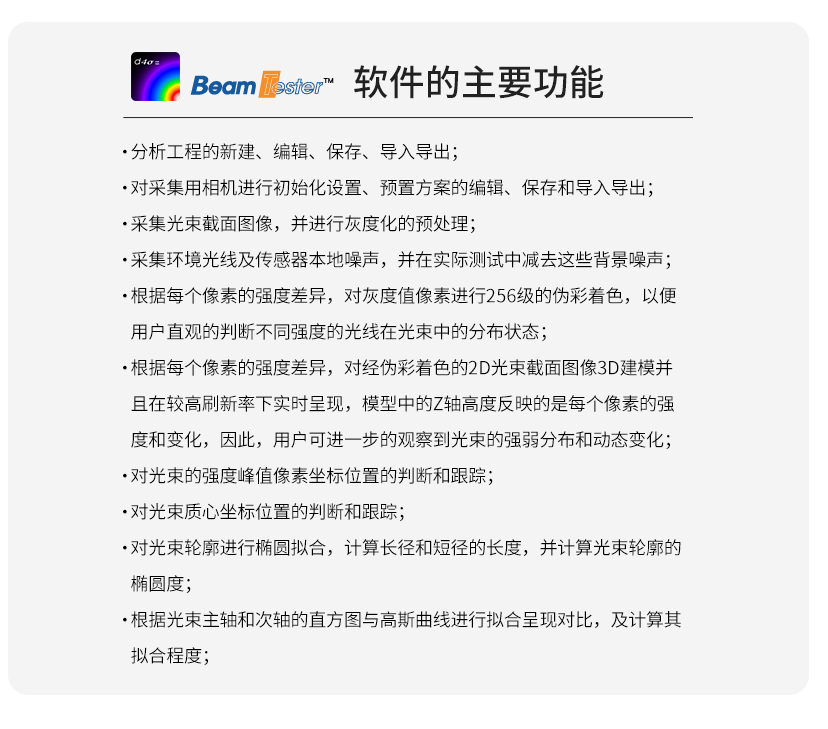 ? 配合基座光學BeamTester? ( 光策) 軟件系統(tǒng),可實現(xiàn)豐富的光束質量分析功能;