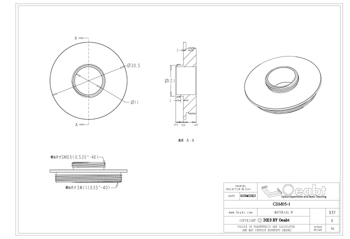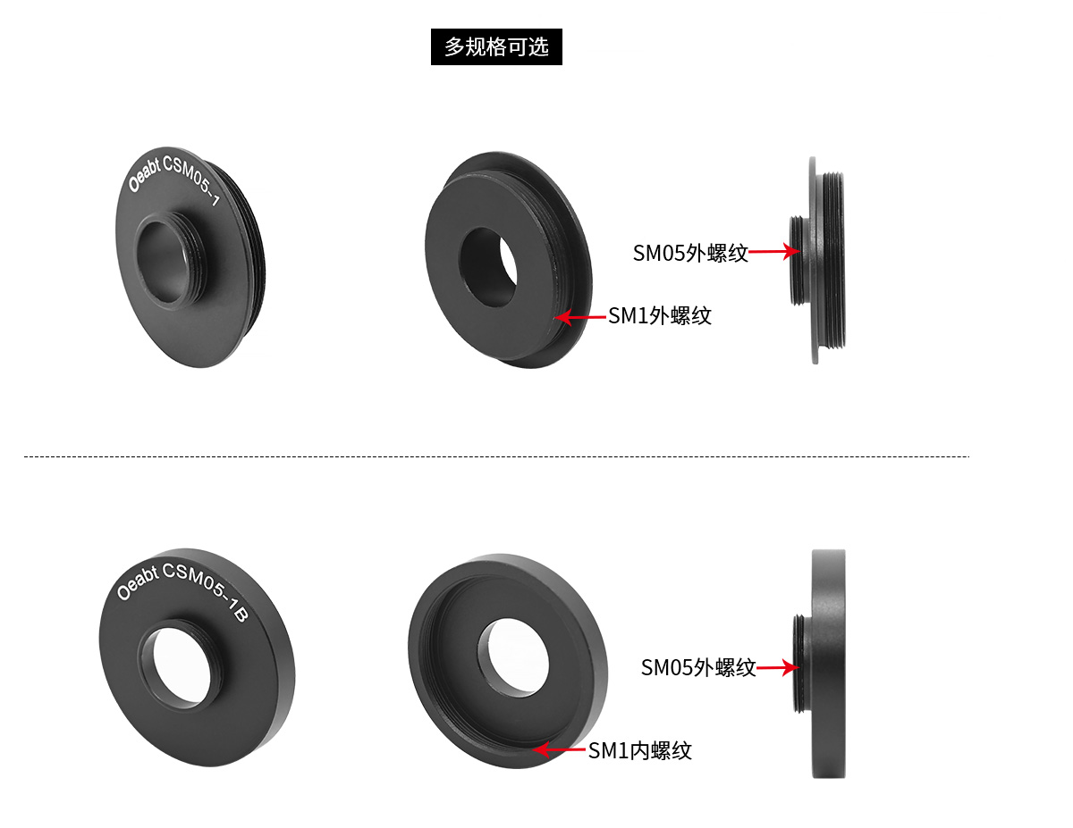 該轉(zhuǎn)接件專門用于耦合SM05和SM1內(nèi)外螺紋,可以適配螺孔或平滑孔不同的光學(xué)組件,實(shí)現(xiàn)多種透鏡套筒連接或半英寸、1英寸組件對(duì)接的需求。以實(shí)現(xiàn)不同尺寸和規(guī)格間的連接和快速更換。