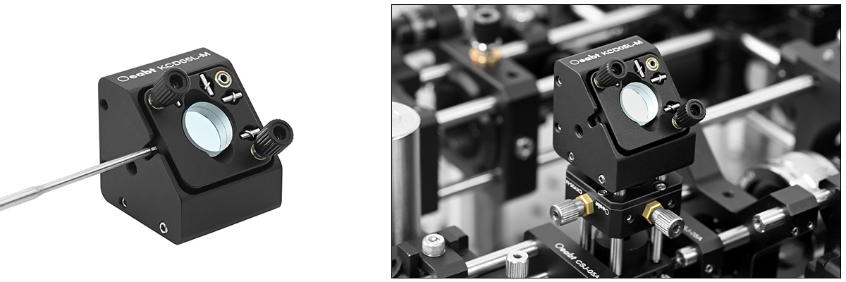調(diào)整架斜面安裝塊可安裝?12.7mm,厚度≥3mm的光學元件。通過1.3 mm的六角扳手擰緊側(cè)邊的膠頭緊定固定光學元件。后部裝置的設計確保了即使調(diào)整架裝配了籠桿或透鏡套管,仍然可以對所安裝的光學元件進行操作。