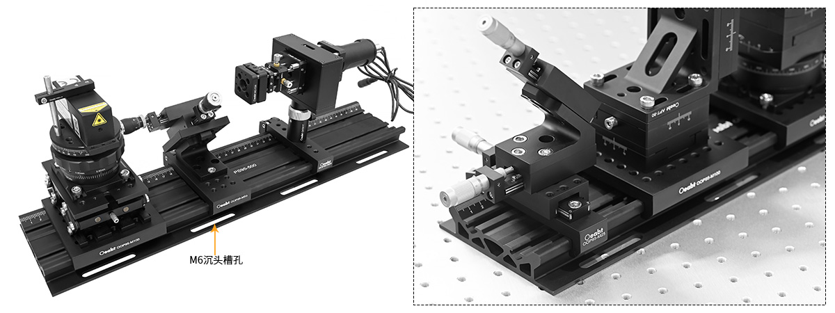 (2)導(dǎo)軌長(zhǎng)度范圍從250-750mm可選,并且導(dǎo)軌安裝面上激光刻有刻度,分度增量1mm,用于精確、可重復(fù)的定位。兼容OOP95-M系列的導(dǎo)軌滑塊平臺(tái),滑塊的安裝臺(tái)面帶有M6陣列的螺孔,為導(dǎo)軌和光學(xué)機(jī)械部件的安裝提供良好的兼容性。