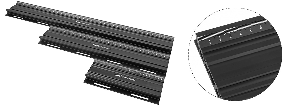 導(dǎo)軌長(zhǎng)度范圍從250-750mm可選,并且導(dǎo)軌安裝面上激光刻有刻度,分度增量1mm,用于精確、可重復(fù)的定位。