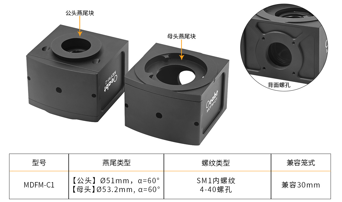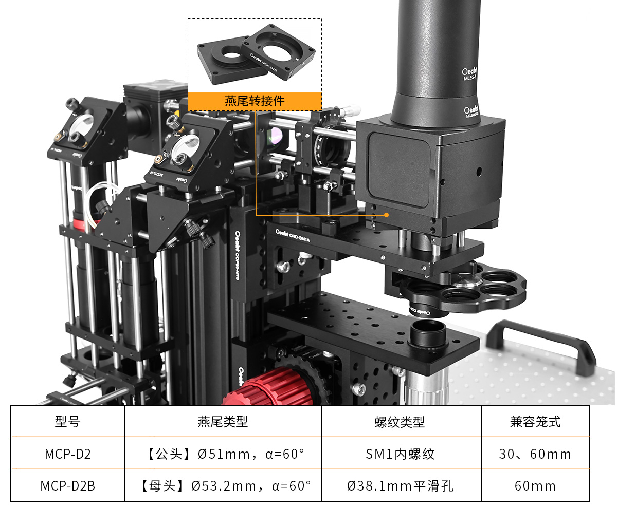 Oeabt顯微成像系列的許多產(chǎn)品都使用了燕尾的設(shè)計(jì),可以匹配我們自己的組件或其他制造商的光元件。為了方便識(shí)別燕尾的兼容性,產(chǎn)品參數(shù)表格列出了Oeabt現(xiàn)有燕尾及其關(guān)鍵尺寸。需注意:這些燕尾型號(hào)專用于Oeabt的產(chǎn)品,其他家顯微制造商可能并不通用該命名規(guī)則,燕尾相應(yīng)的兼容性請(qǐng)查看工程圖紙。