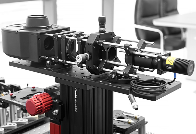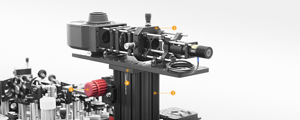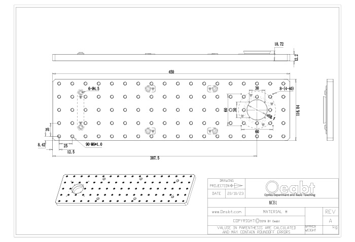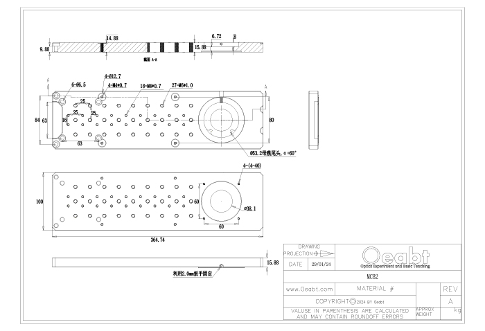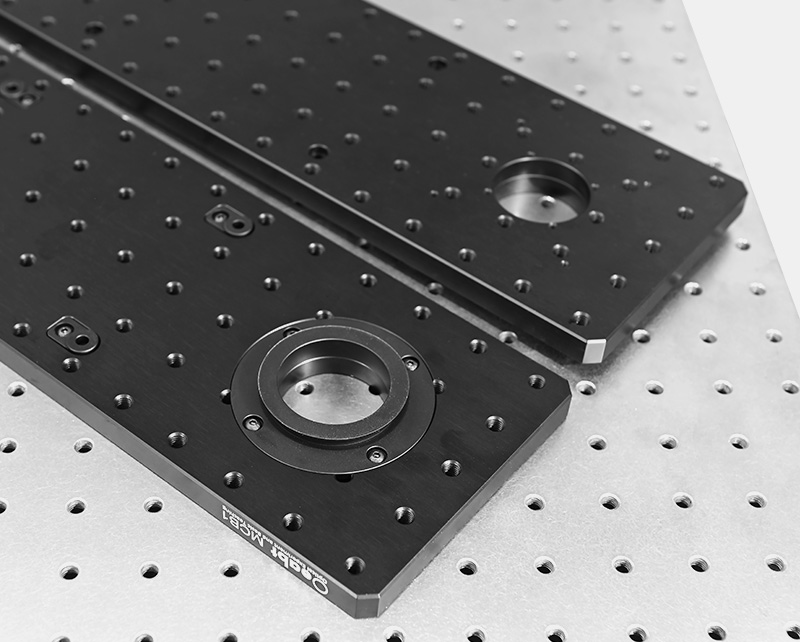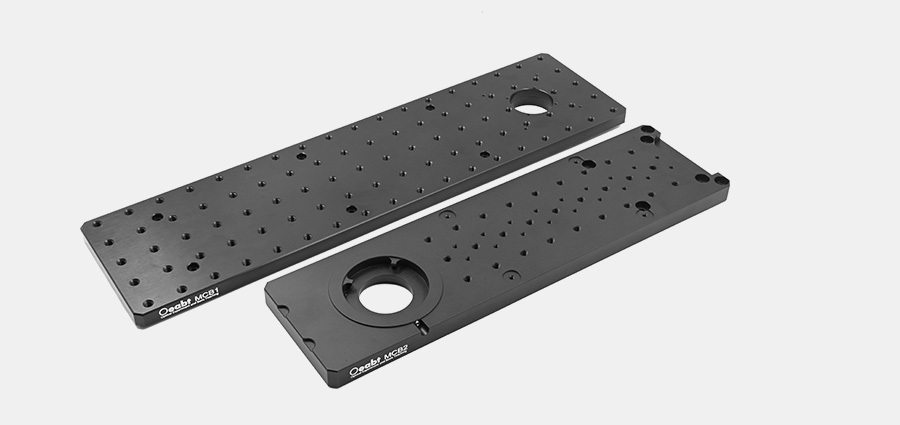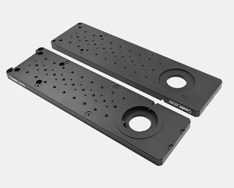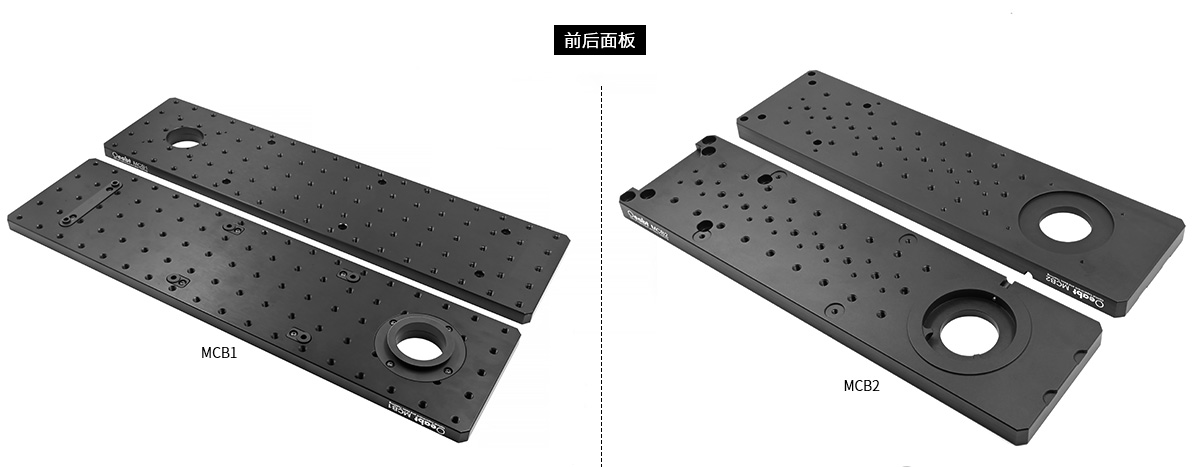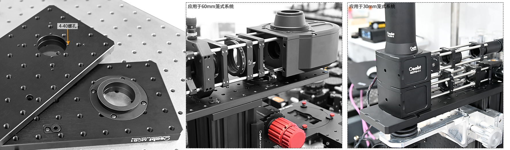 MCB系列面包板是用于Oeabt顯微成像系統(tǒng)頂部搭建自定義寬場觀測裝置和落射照明路徑,面包板有一個?51mm的公頭燕尾塊,燕尾中心開有?38.1mm的通孔,做成像系統(tǒng)的光軸路徑。