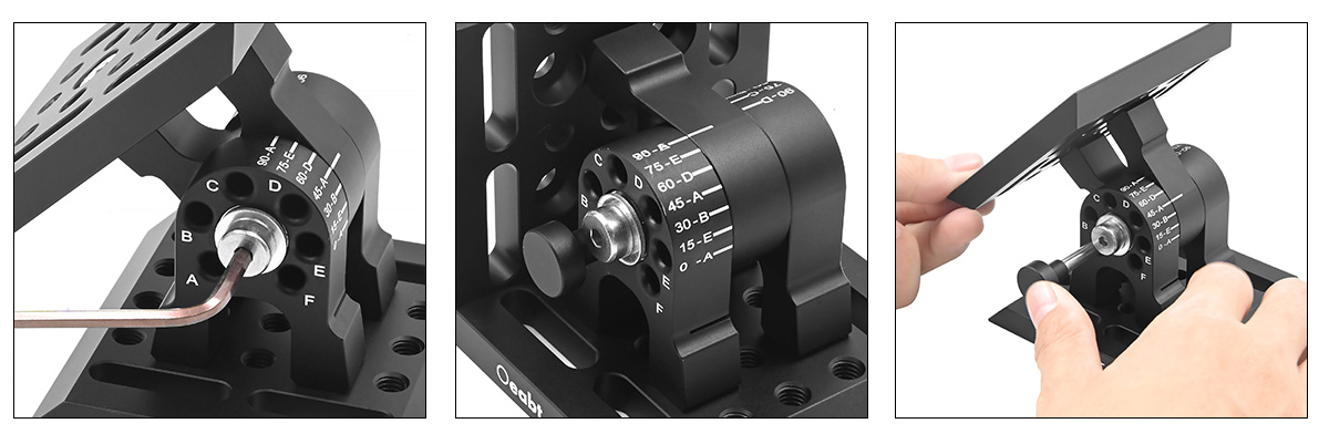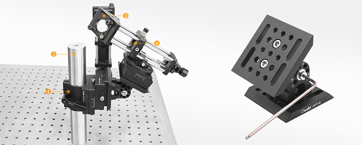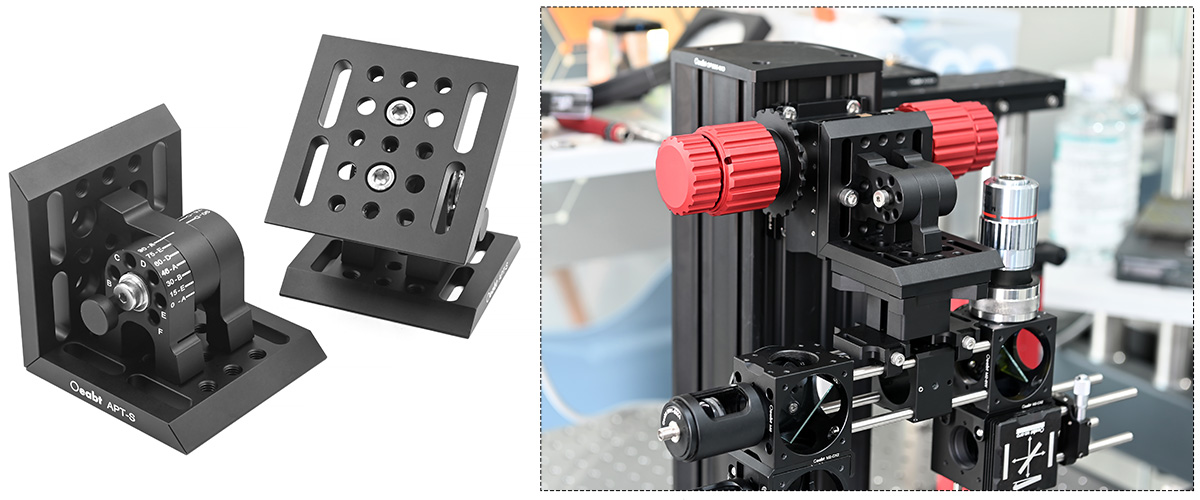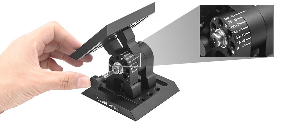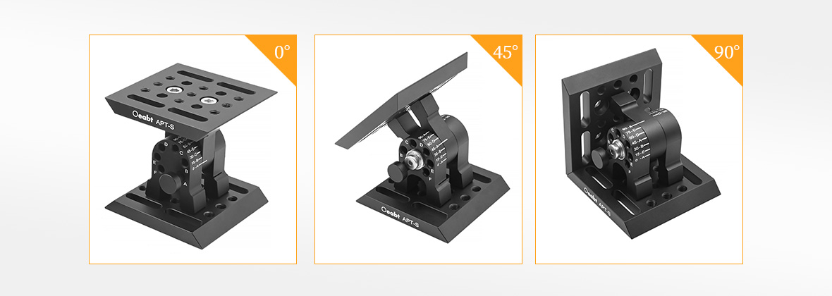 APT-S角度切換支架有180°范圍的調(diào)節(jié),它可以在13個(gè)不連續(xù)的位置上固定安裝平臺(tái),每個(gè)位置之間的角度增量為15°。通過使用內(nèi)附的固定銷,可以輕松地將支架鎖定在特定的角度位置。