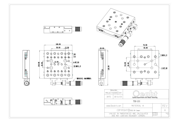 ? 行程50mm,驅動方式:SM25測微頭,分度10μm;