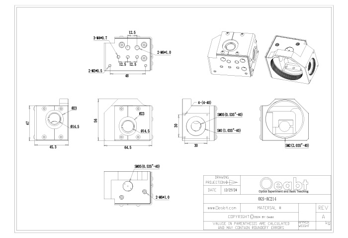 ? 立方外殼開有4-40、M3、M4、M6螺孔;