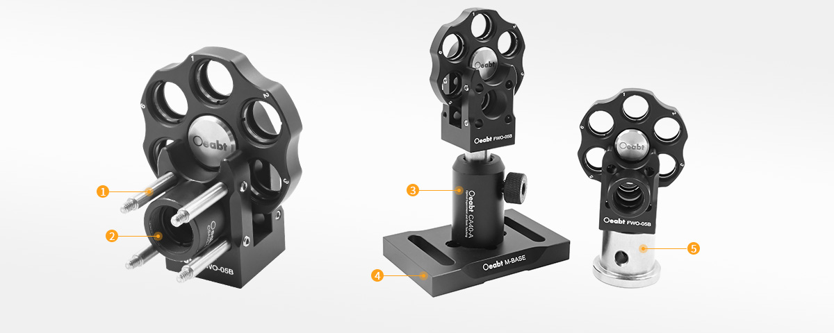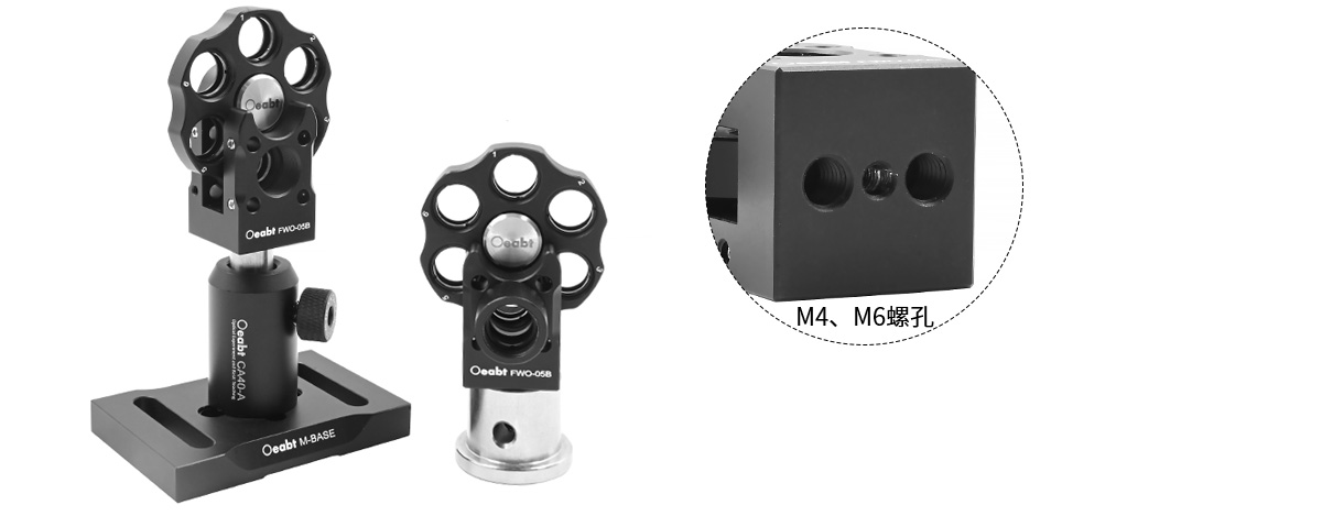 FWO-05B濾光片轉(zhuǎn)輪兼容16mm同軸系統(tǒng),具有六個帶SM05螺紋的濾光片架,可安裝?0.5英寸最厚4.5mm的光學(xué)元件。