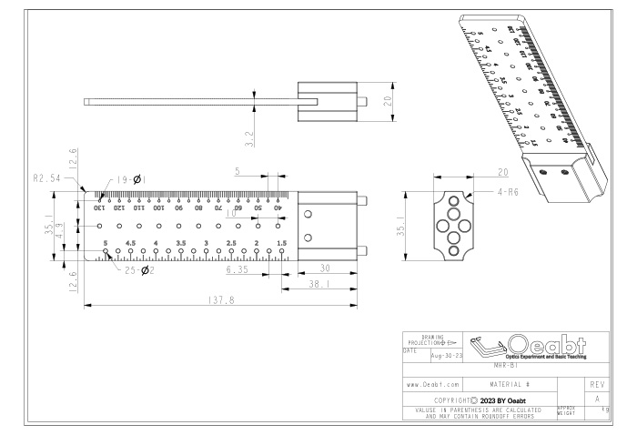 MHR-B系列磁性準(zhǔn)直尺可用于測(cè)量最高135mm的光束高度,正反兩面均刻有1.0mm和1/16英寸的激光刻度,便于精準(zhǔn)測(cè)量,為組件的定位提供參考。