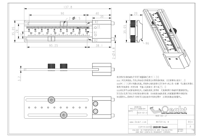 公制刻度:135mm,分度1mm;英制刻度:5.5英寸,分度1/16英寸; |
