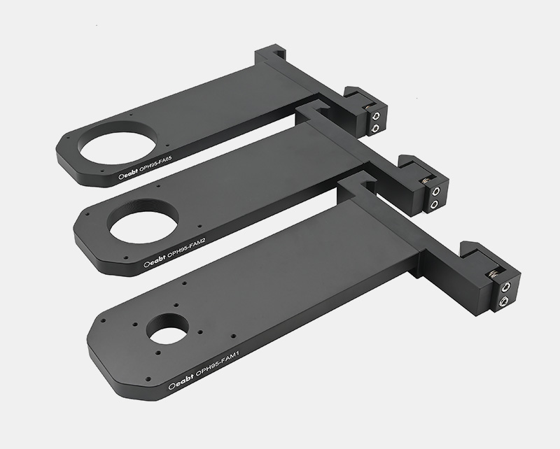 (2)OPH95-LM系列調焦套件包含一個可以連接到顯微鏡主體支架的95mm燕尾夾、一個手輪位移臺和一個直角轉接塊構成。通過直角塊連接LMA95系列安裝臂/架,該模塊有兩種版本,以便用戶選擇合適的模塊,充分利用空間。