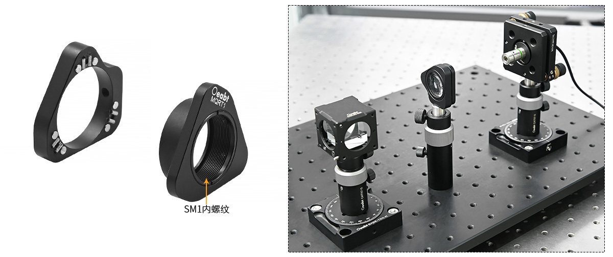 ? 可拆卸的磁性前面板; SM1(1.035”-40)內螺紋; 兼容?1英寸,厚度≤8.8mm的光學元件; 底部M4螺孔,可安裝接桿;