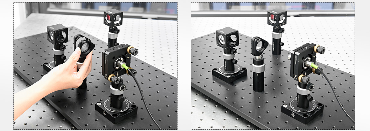MQRT1由一個背板和一個可拆卸的前面板組成,通過采用磁性耦合安裝架,可以消除在裝置中重新插入光學元件時需要進行的繁瑣對準過程。
