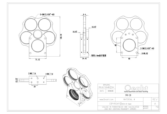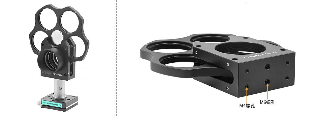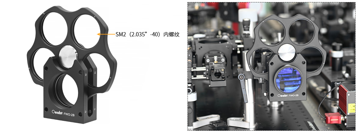 FWO-2B轉(zhuǎn)輪帶了5個(gè)SM2螺紋的濾光片架,可直接兼容60mm籠式共軸系統(tǒng)。