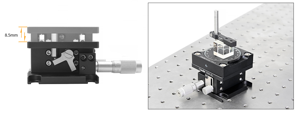 TSX-ZL縱向升降臺(tái)具有8.5mm的高度調(diào)節(jié)范圍,臺(tái)面高度從37.5mm到46mm。