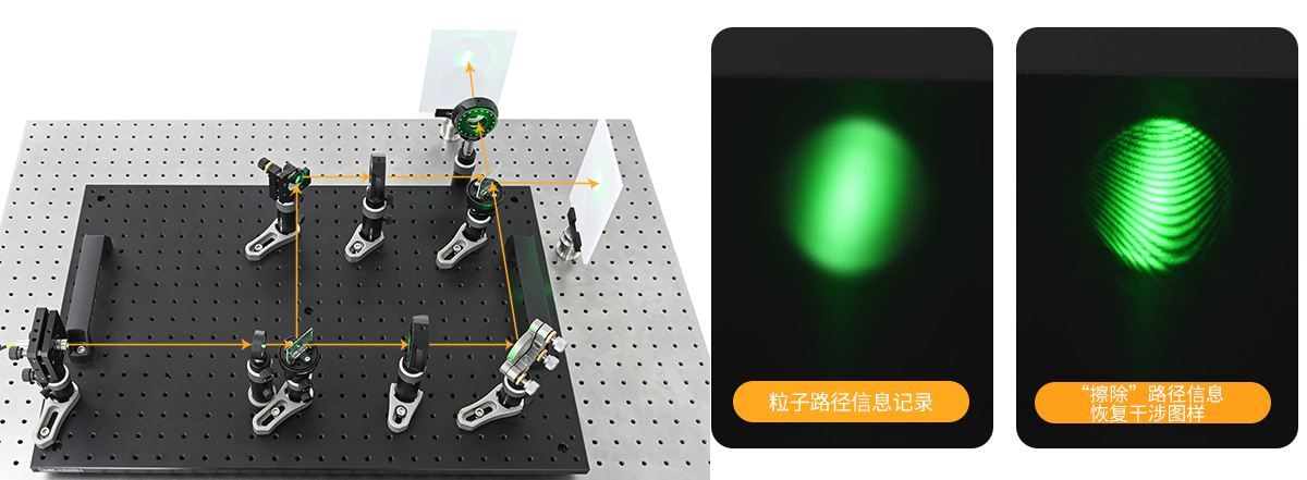 (3)量子擦除:引入量子擦除器(如偏振器或糾纏光子),通過特定操作“擦除”路徑信息,恢復干涉圖樣,即使路徑信息已被記錄。