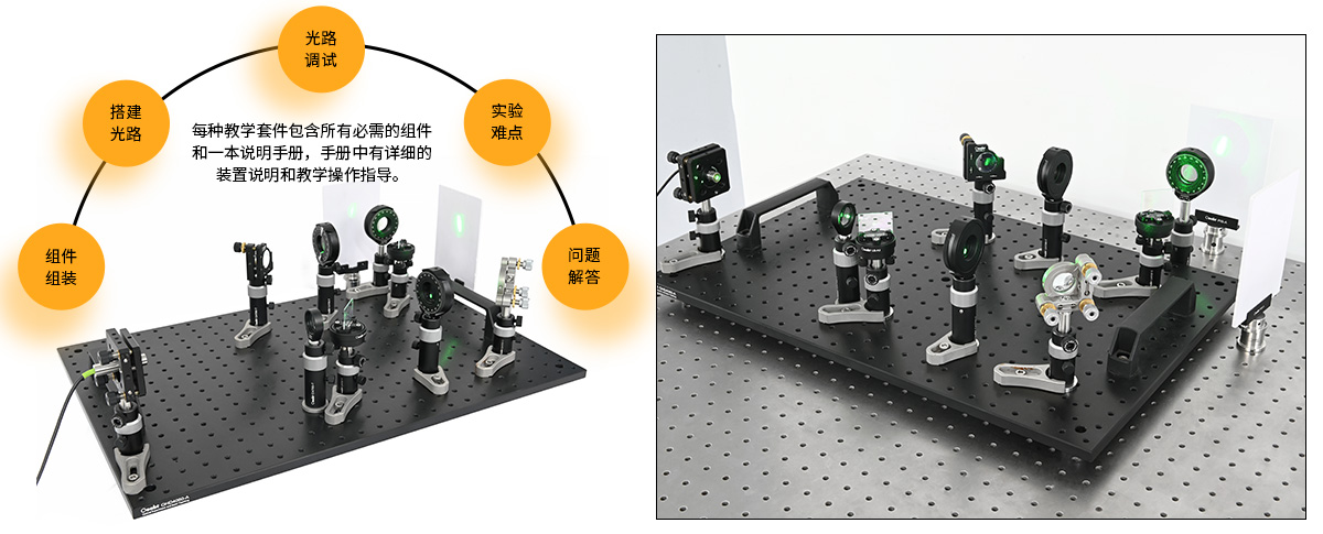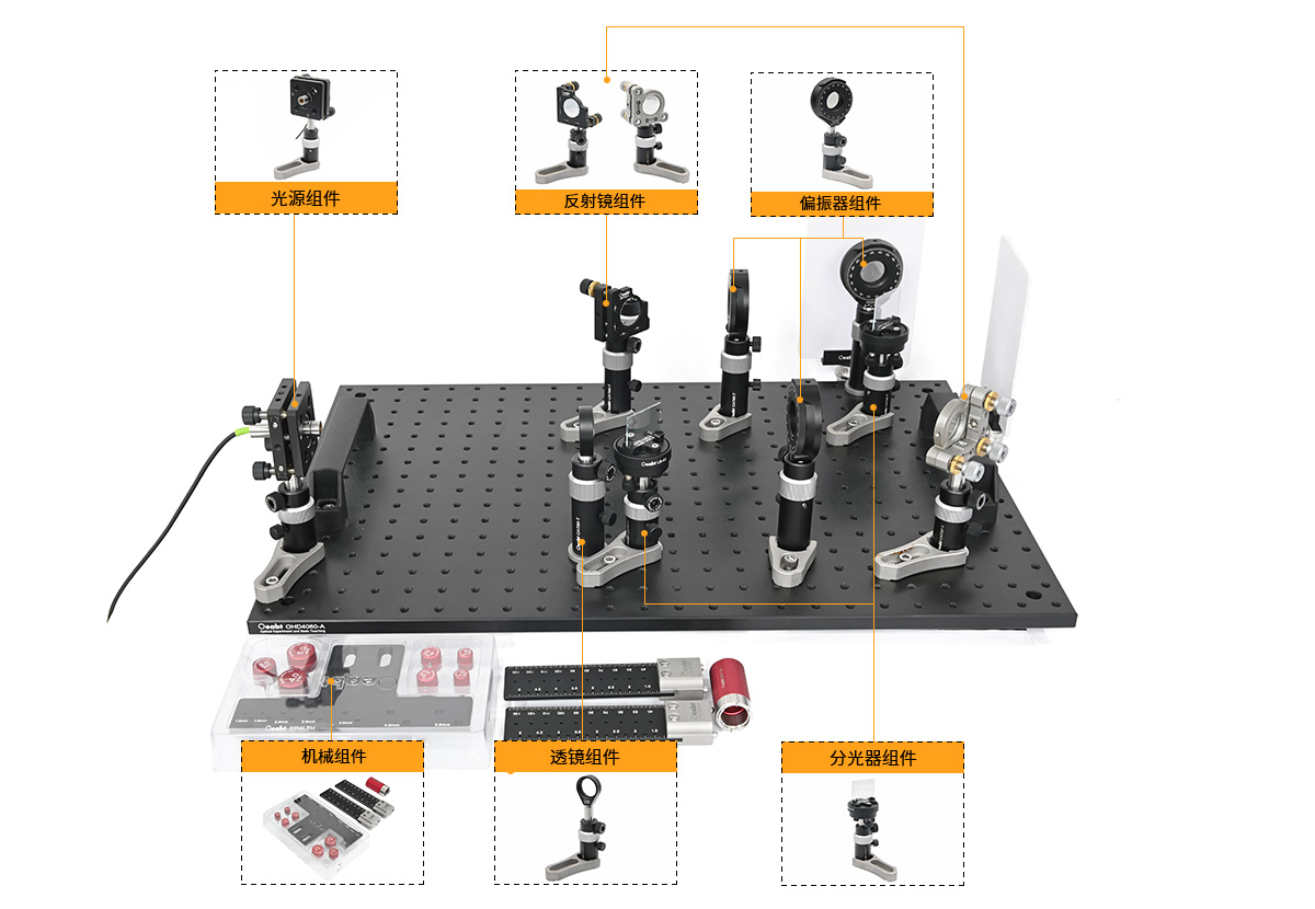 ? Oeabt教學演示系列產(chǎn)品旨在通過各種經(jīng)典實驗來促進物理學、光學、光子學以及各種新興研究領域的發(fā)展。每種教學套件包含所有必需的組件和一本說明手冊,手冊中有詳細的裝置說明和教學操作指導。
