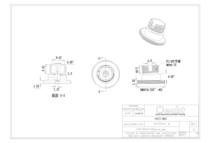 注:FC/APC光纖插頭具有4°機(jī)械角,以補(bǔ)償輸出光束的折射角。