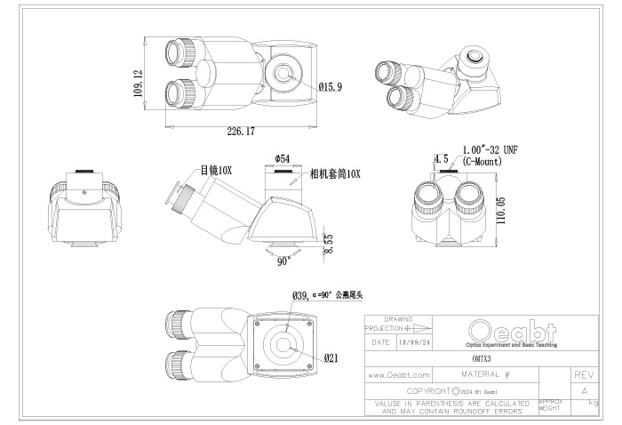 ? 三目鏡帶10X目鏡和相機(jī)C-Mount端口;