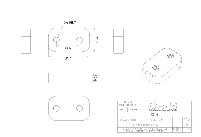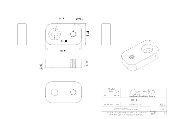 ? 使鏡架的光學(xué)面和接桿旋轉(zhuǎn)軸對(duì)齊; 兼容適用于Oeabt系列的調(diào)整鏡架系列; PDX系列是固定式的M4螺孔或沉孔定心板; PMK1-DX可調(diào)定心板則提供額外8.9mm的定位范圍;