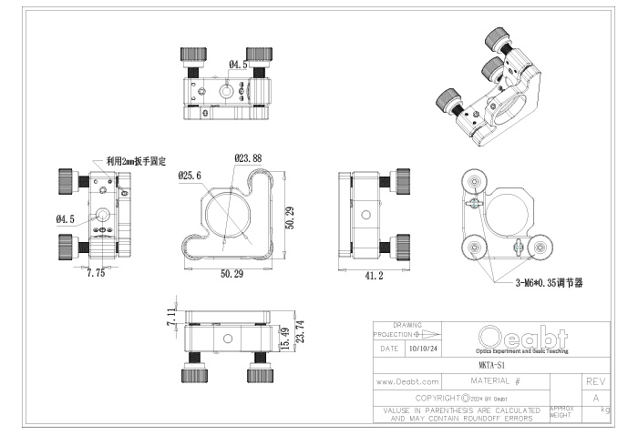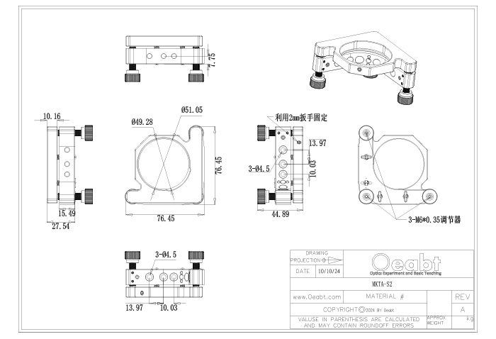 (3)此外,調整架還設計了M4沉頭安裝孔,可以根據實驗要求,選擇左手或右手方向進行接桿安裝,確保在不同操作環(huán)境下的靈活性和便利性。