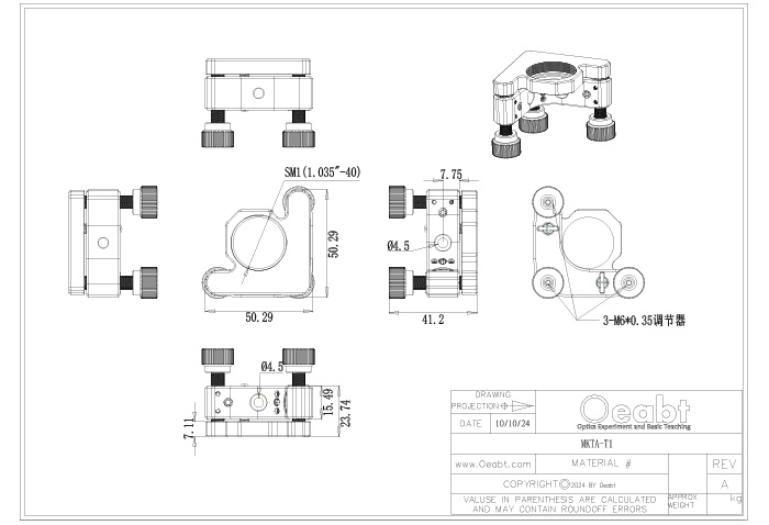 (2)該系列調整架提供兩種光學元件的固定方式。其中,MKTA-S系列采用尼龍頂絲,從側面固定光學元件;MKTA-T系列則設計有帶SM螺紋的光學元件槽,兼容透鏡套筒,并可通過內螺紋連接外螺紋轉接件,從而支持安裝激光二極管模塊、光纖準直器等多種光學組件。
