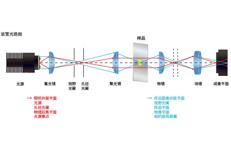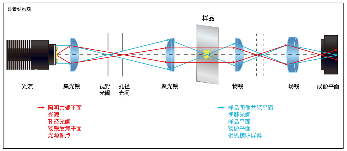 科勒照明實驗旨在通過建立標(biāo)準(zhǔn)化、均勻且高效的顯微鏡照明系統(tǒng),幫助學(xué)生理解科勒照明的光路設(shè)計和工作原理,及其在顯微觀察中的應(yīng)用。