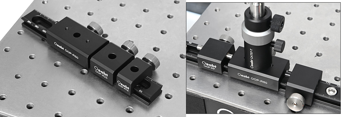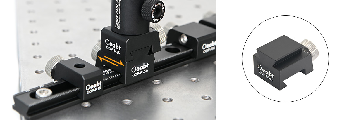 OOP-RP定位滑塊和OOP-RN復(fù)位滑塊輔助安裝在燕尾導(dǎo)軌滑塊上的光學(xué)組件進行精調(diào)移動。配合使用時,能在導(dǎo)軌軸上從兩個方向提供精確對準。