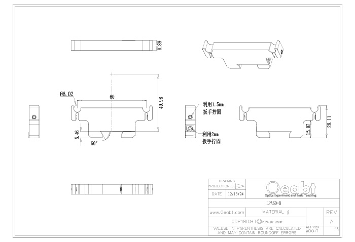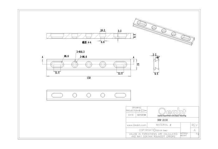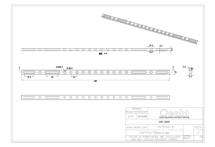 導(dǎo)軌的長度范圍從75mm-600 mm可選,同時導(dǎo)軌激光標有刻度,每10mm有數(shù)字標記,分度1mm。導(dǎo)軌可通過沉孔槽固定到光學(xué)平臺或面包板上,并具有緊湊型結(jié)構(gòu)。