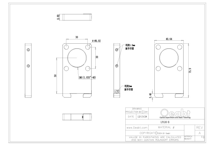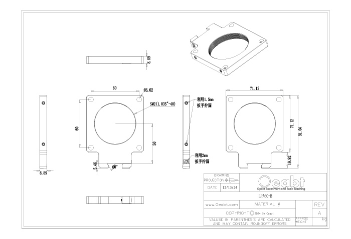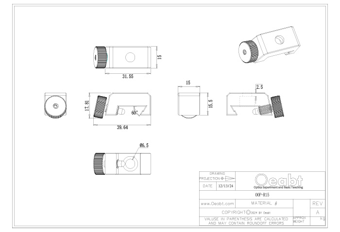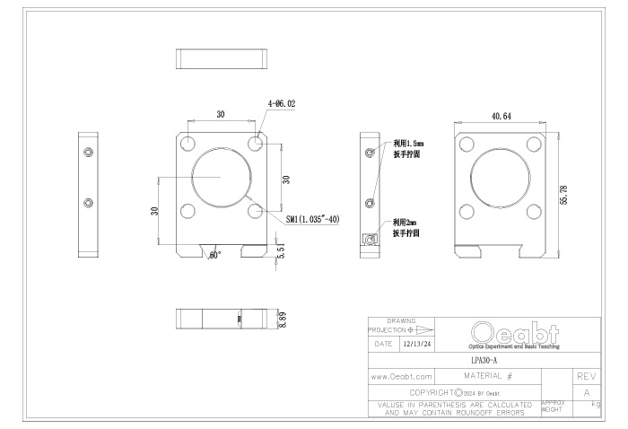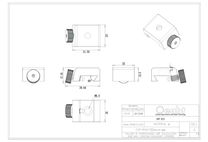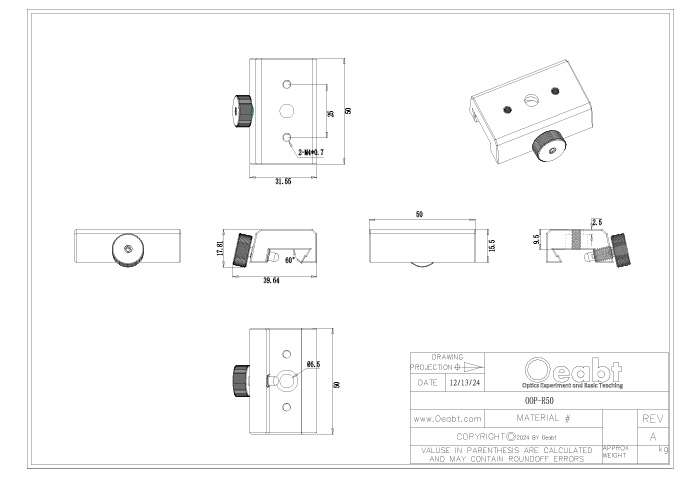 (2)OOP-R系列導(dǎo)軌滑塊設(shè)計用于將組件安裝到OOM-LR系列燕尾導(dǎo)軌,滑塊可卡入沿導(dǎo)軌長度的任何地方,不需要從導(dǎo)軌末端安裝。表面且開有M6沉孔用于光機組件的安裝,精密加工在沿著導(dǎo)軌長度平移時能維持良好的橫向?qū)剩瑐?cè)面的手擰旋鈕鎖定位置。